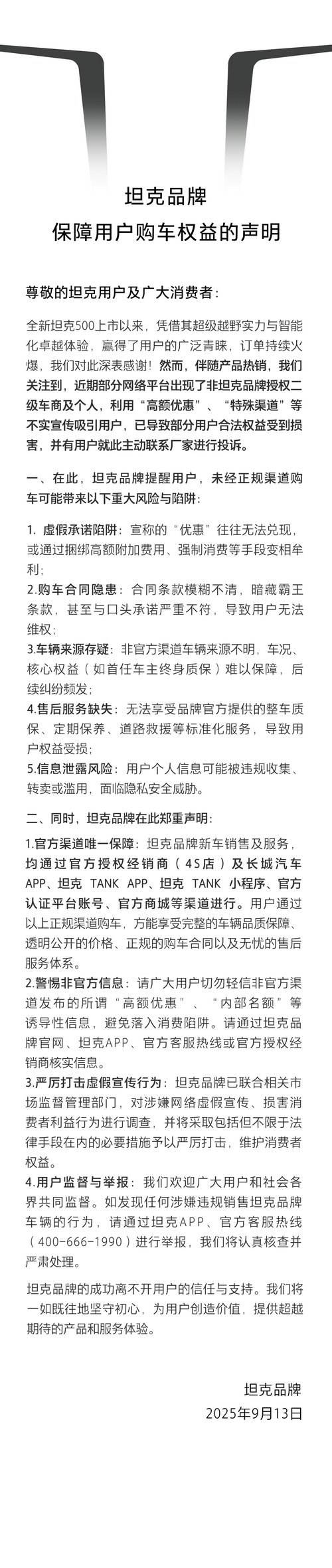 全新坦克 500 购车:认准官方避开陷阱